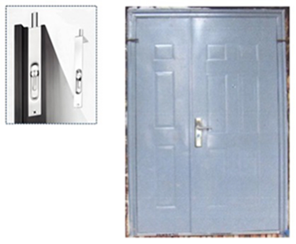 (3)【图示12】为子母门的检测照片:子门用插销固定,母门通过锁舌固定于子门锁孔。