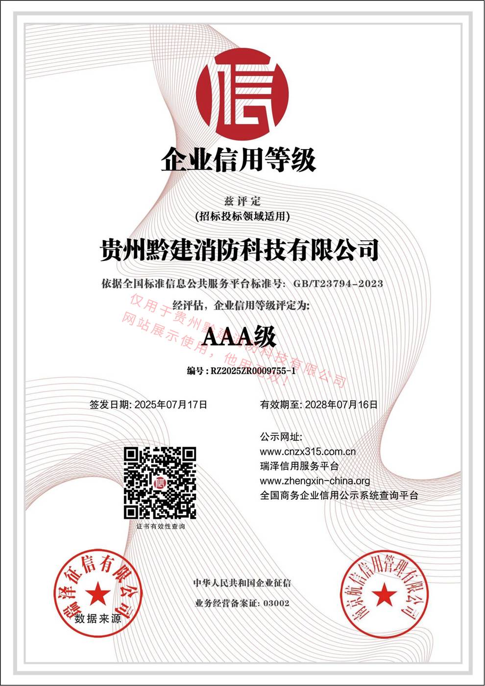 企业信用等级 AAA级